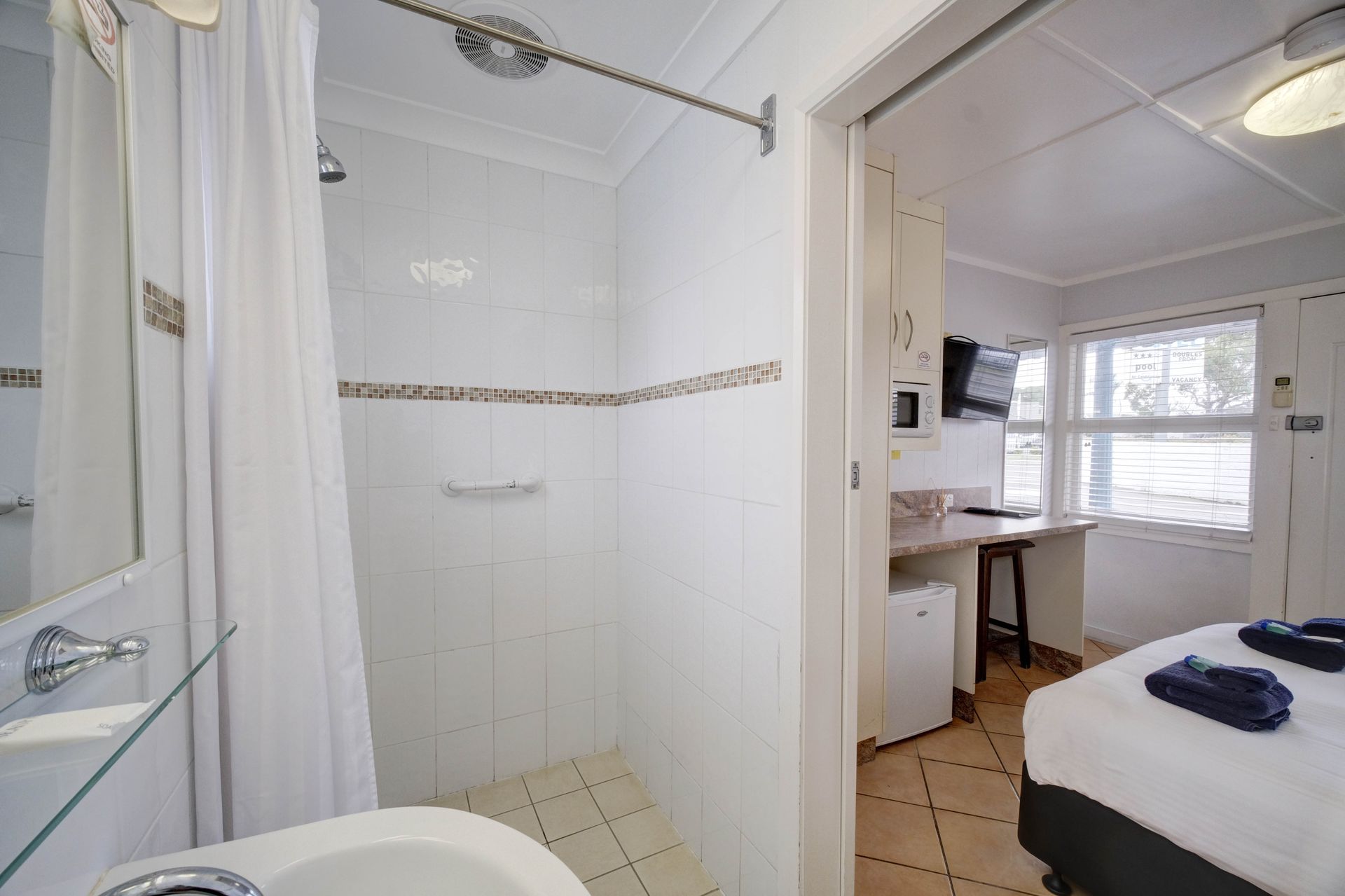Great Value! Double bed, Includes Digital TV, Air conditioning, Microwave, DVD player, ensuite bathroom and tea and coffee facilities. Access to all guest amenities including: